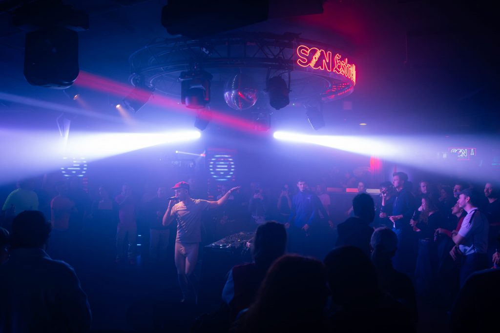 Imagen del Café Berlín bajo el escenario de Son Galicia